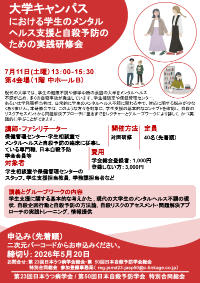 - 大学キャンパスにおける学生のメンタルヘルス支援と自殺予防のための実践研修会