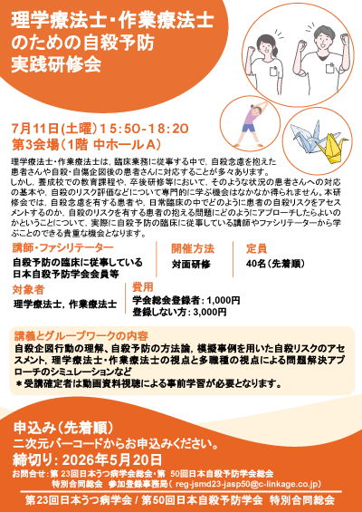 - 理学療法士・作業療法士のための自殺予防研修会
