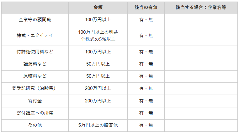 - 企業・組織や団体が提供する寄付講座に申告者らが所属している場合とする。